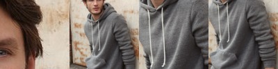 - Raw edge seams around hood opening, pocket seams and neckline