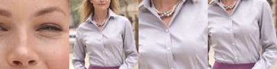 - Contrasting neckband, buttons, edge of placket and inner placket