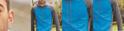 • Contrast-color 1x1 rib collar and raglan sleeves