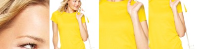 Barely there cotton knit with a body conscious cut turns the T-Shirt into figure flattering fashion.