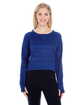 JA8663 Ladies' Odyssey Striped Poly Fleece Hi-Lo Crew