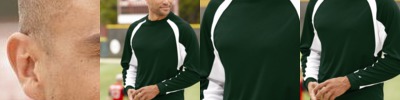 3.4 oz., 50% polyester, 25% combed and ringspun cotton, 25% rayon; 40 singles; Contrast raglan sleeves and neck trim; Sideseamed; Unisex fit; Solid Colorblock colors 52/48 cotton/poly, 40 singles, 3.6 oz.; Marble colors are 91/9 poly/combed & ringspun cotton, 30 singles, 4.0 oz.;