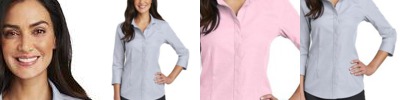 Thoroughly updated, this crisp nailhead shirt has a silky feel and a wrinkle-resistant finish for exceptional non-iron performance. 4-ounce, 60/40 cotton/polyester with pucker-free taped seams and RH engraved buttons to elevate the office-ready look. Open collar and neckline, bust darts and back seaming. Mitered adjustable cuffs.