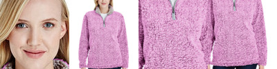 9.5 oz., high loft polyester sherpa; 1/4-zip placket and self fabric collar; Set-in sleeves & sideseam waist vents;