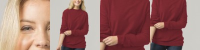 8 oz., stretch & sueded triblend terry; 51% rayon, 43% polyester, 6% elastine; 4-way stretch fabric with striped loop back yarns; Set-in sleeves & hand pockets; Self fabric collar, waist & cuffs;