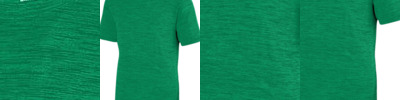 100% polyester heathered wicking knit ; Wicks moisture away from the body ; Pad print label ; Self-fabric crewneck collar; Set-in sleeves ; Double-needle hemmed bottom and sleeve.;