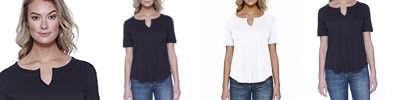 4.3 oz., 52% cotton 48% polyester; 30 singles; Ultra-Fine Cotton Blend; Fashion fit; Side seams; Moroccan style neck; Relaxed fit; Tear-away label; Made in a W.R.A.P. certified factory;