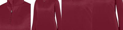 Two layers of 100% polyester wicking knit ; Wicks moisture away from the body ; Fully reversible ; Self-fabric mitered V-neck collar ; Contrast color side inserts ; Each layer hemmed separately for embellishment ; Outside locker label ; interior collar is contrasted (all body colors include charcoal grey contrast detailing except charcoal heather, which has black); concealed 6” aluminum zipper;