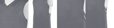 Two layers of 100% polyester wicking knit ; Wicks moisture away from the body ; Fully reversible ; Self-fabric mitered V-neck collar ; Contrast color side inserts ; Each layer hemmed separately for embellishment ; Outside locker label ; Contrast jersey hood lining, neck tape and drawcord for contemporary styling details (all body colors include charcoal grey contrast detailing except charcoal heather, which has black); Two-needle coverstitching on armholes, shoulders and waistband;