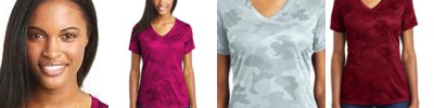 LST371-CS Ladies CamoHex Colorblock V Neck Tee