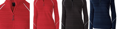 100% polyester; Dry-Excel™ bonded polyester is a scuba bonded fabric featuring a tonal striation with DWR (Durable Water-Resistant) finish for weather-resistance and microfleece lining for maximum warmth; Storm Dfend™ Technology features durable water-resistant finish keeps you dry while knit soft shell breathes to keep you comfortable; Poly/spandex storm cuffs for added weather protection and comfort ; Ladies' fit; Woven label; Half-zip pullover style with reflective zipper pull and matte tips;