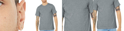 - Athletic Heather/Black Heather: 4.2-ounce, 90/10 Airlume combed and ring spun cotton/poly, 32 singles