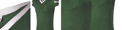 - Contrast color Lycra triple bar-tacked set-in mitered V-neck collar