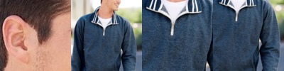 • 1x1 ribbed yarn-dyed striped inside collar, cuffs and waist