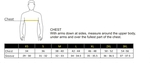| Chest | 34-36 | 38-40 | 42-44 | 46-48 | 50-52 | 54-56 | 30-32 |