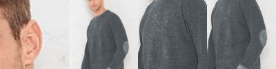 - Flatlock stitched front v-patch and raglan sleeves
