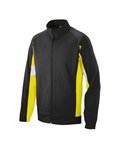 8.7 oz/yd² / 295 gsm, 86% polyester, 14% spandex jersey; Moisture-wicking; UV protection performance; Center front coil zipper with decorative grosgrain zipper pull; Luxury, comfort and performance in one; Raglan sleeve;