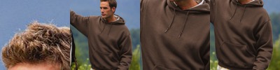 12-ounce, 82/18 cotton/poly fleece 77/23 cotton/poly (Oxford Grey) 66/34 cotton/poly (Charcoal Heather) Reverse Weave cross-grain cut resists shrinkage Two-ply hood with dyed-to-match drawcords 1x1 rib knit side panels and hem Cut-off sleeves with stitched edges Front pouch pocket Embroidered Champion C logo at left cuff Woven back neck label