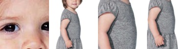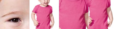 - Contrast double needle ribbed binding on lap shoulder and leg opening