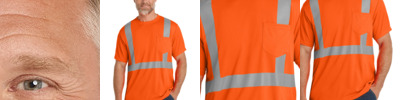 This breathable, moisture-wicking mesh tee delivers high visibility and on-the-job comfort. 4.1-ounce, 100% polyester birdseye mesh UPF rating of 30 Durable, reflective 2-inch tape meets ANSI 107 requirements and provides 360-degree visibility on body 1x1 rib knit neck Back neck tape Left chest pocket 1x1 rib knit cuffs