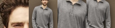 - Seamless 1x1 rib collar with two-needle coverstitching on front neck