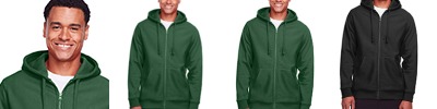 11 oz.yd2 / 373 gsm, 70% cotton, 30% polyester crossweave fleece; Safety Yellow is 50% cotton, 50% polyester; Water-repellent; Three-piece self-lined hood; Dyed-to-match flat braided drawcord at hood; Dyed-to-match center front vislon zipper; Front pouch with media pocket; Matching knit trim at cuff and hem; Locker loop main label; Team fit; Easy care;