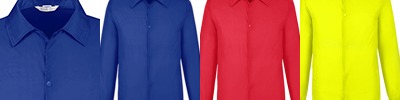 3.5 oz/yd2 / 130 gsm, 100% polyester interlock; Moisture-wicking and UV protection performance; Cationic dyes for superior brightness and color fastness; Three-button placket; Integrated collar stays; Dyed-to-match buttons; Tear away label;