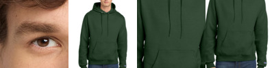 9-ounce, 50/50 U.S. grown cotton/poly 50/40/10 cotton/poly/black poly (Light Steel) 50/48/2 cotton/poly/black poly (Silver Grey) Double Dry technology wicks moisture Two-ply hood with dyed-to-match drawcords 1x1 rib knit sleeve cuffs and hem Front pouch pocket Embroidered Champion 'C' logo at left cuff Woven back neck label