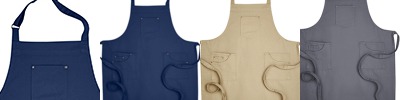 6.9 oz., 100% cotton twill; chino style stitched pockets with rivets; gun metal eyelets secure 35" self fabric ties; top centre pocket; neckband with buckle and adjustable snap button fastening; 34"L x 28"W; Oeko-Tex® Standard 100 certified; WRAP certified;