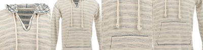 7.5 oz., 55% cotton, 39% polyester, 6% rayon triblend fleece; off white drawcords; 1x1 rib armhole openings and waistband; set-on pouch pocket;