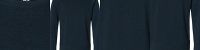 - Solid 1x1 rib inside collar, cuffs and waistband