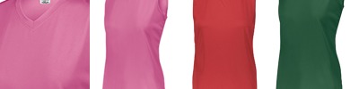 100% polyester wicking knit with True Hue Technology® that helps prevent dye migration; Moisture-wicking; Ladies' fit; Updated tailored fit; Tagless label; Outside locker label; Designed to be NFHS compliant;