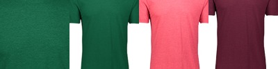 3.8 oz., 50% polyester/38% cotton/12% rayon tri-blend knit; Fits loose to body; Tear away label; Crewneck; Set-in sleeves with rolled forward shoulder seam;