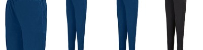 Heavyweight 100% polyester matte brushed tricot; Woven label; Covered elastic waistband with inside drawcord; Side seam pockets; Tapered fit; Back yoke; Zipper on outside lower leg;
