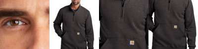 From job sites to weekend errands, this layerable 1/4-zip offers easy-wearing warmth and undeniable Carhartt versatility. 10.5-ounce, 50/50 cotton/poly blend or 59/41 cotton/poly blend (Black, Carbon Heather, Carhartt Brown, New Navy)* 70/30 cotton/poly blend (Heather Grey) Mock neck collar 1/4-zipper with storm flap Front hand warmer pocket Stretchable, spandex-reinforced, rib knit cuffs and waistband Carhartt-strong, triple-stitched main seams for added durability Carhartt label sewn on left handwarmer pocket Loose fit *Please note: Select colors in Carhartt fleece are currently transitioning from a 50/50 cotton/poly blend to a 59/41 cotton/poly blend. Weight and fabric properties remain the same. Your order may contain a combination of both fabrics.