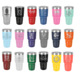 30 oz. Stainless Steel Polar Camel Tumblers features double-wall vacuum insulation with a clear lid. The mug has a narrower bottom to fit most standard cup holders. It is 2X heat & cold resistant compared to a normal tumblers. Polar Camels are made from 18/8 guage stainless steel (18% chromium/8% nickel) - also known as Type 304 Food Grade.