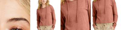 The perfect hoodie tee crafted from three yarns with a modest crop for an effortlessly cool look. 4.5-ounce (153 GSM) 50/25/25 polyester/combed ring spun cotton/rayon, 32 singles Modest crop Unlined hood with self-fabric drawcords 1x1 rib knit cuffs Drop shoulder Shoulder to shoulder taping Finished hem with side vents Relaxed fit Tear-away label