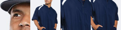 - Rib collar, cuffs, and hem band