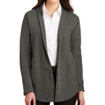 This lightweight, dual-color cardigan layers beautifully and has a timeless appeal. An open front and front and back seaming details at the waist give it sophistication.