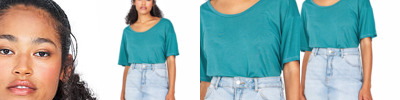 4.2 oz., 30 singles; 100% Modal; The fiber Modal from Lenzing® is a sustainably sourced, renewable and bio-degradable botanic fiber; Relaxed fit, side seams; Shoulder-to-shoulder taping; Double-needle stitching on sleeves and bottom hem; Satin Label; Made in USA;