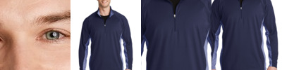 By mixing heather with a solid color and adding reflective hits, this moisture-wicking pullover has a technical look plus plenty of stretch for easy movement. 6.8-ounce, 90/10 poly/spandex jersey Soft-brushed backing Tag-free label Reflective details on right sleeve and lower back Cadet collar Reverse coil zipper Raglan sleeves Open cuffs and hem