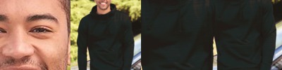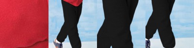 - Contrast color raglan sleeves, collar, "V", and waistband