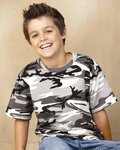 Playground warriors give a military edge to their after-school style in a rugged T-Shirt with camo print.